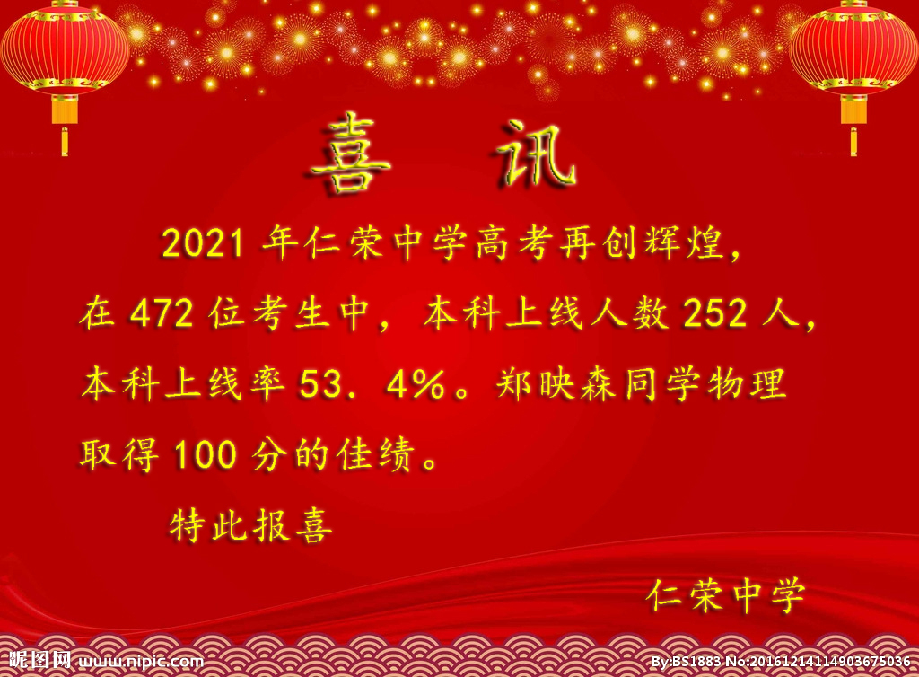 汕尾市海豐縣仁榮中學是由汕尾市海豐縣仁榮實業發展有限公司本著回報社會的宗旨,以高投入、低收費為辦學思想,于1999年秋季經汕尾市教育局批準創辦的全日制完全中學。學校占地面積76000平方米,建筑面積62000平方米,投入資金1.5億元。校園美麗幽雅,綠樹成蔭,鮮花盛開,荔果飄香。目前有初、高中60個教學班,在校學生近2700人,教職工260多名。